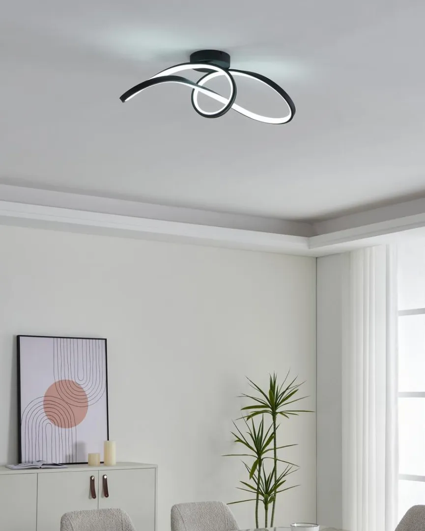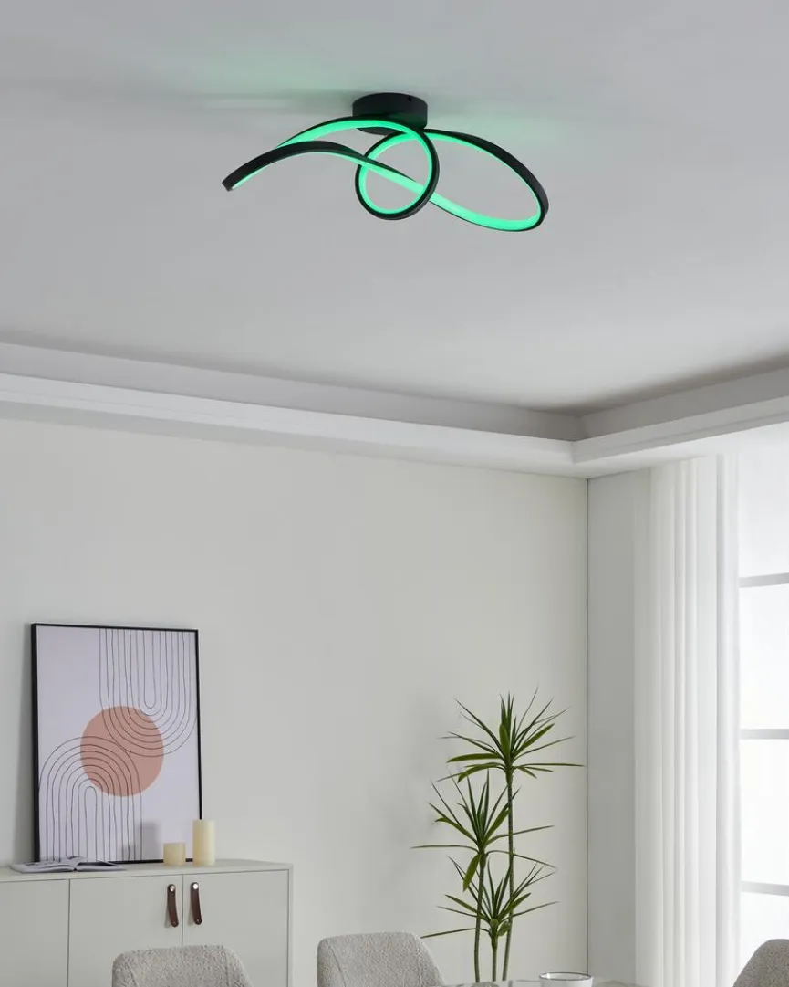 Dank ihrer Spiralenform ist die Deckenleuchte Calarossa Z aus dem Hause EGLO ein markanter Blickfang im Zimmer. Statten Sie mit dieser aufregenden Deckenlampe modern und minimalistisch eingerichtete Räumlichkeiten aus! Die stylische Deckenleuchte Calarossa Z lässt sich dimmen und ist darüber hinaus mit einer Farbwechselfunktion versehen.