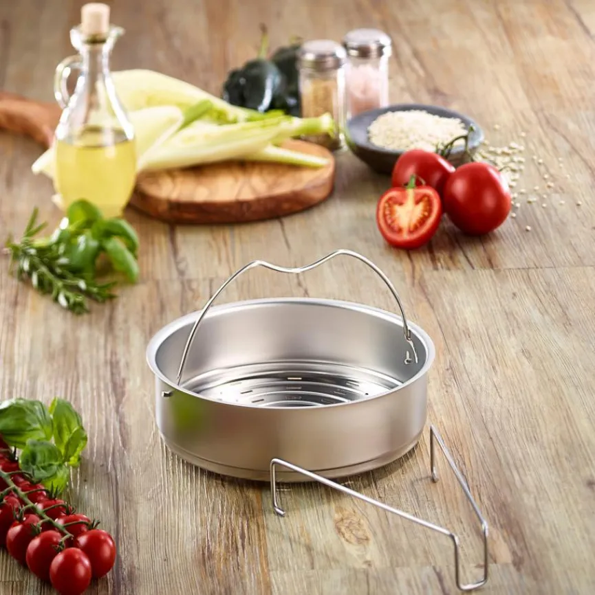 Mit dem robusten Einsatz-Set Vitavit ungelocht Ø 22 cm von Fissler erhalten Sie eine tolle Ergänzung zu Ihrem Kochtopf dieser Marke. Sie können damit Fisch oder Gemüse schonend garen, ohne dass Sie ein Extragerät anschaffen müssen.