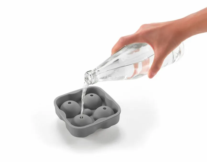 Mit dem Eiswürfelformer Kugeln gelingen Ihnen pro Gefriergang ohne viel Aufwand vier perfekt gerundete Eiskugeln für Ihren Drink. Der gut durchdachte Eiswürfelformer Kugeln lässt sich durch die Öffnungen von oben leicht mit Wasser befüllen. Nach dem Gefrieren ist das Herauslösen aus der Form kein Problem.