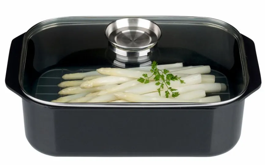 - Artikel beinhaltet je 1x Rechteckbräter, Deckel mit Aromaknopf