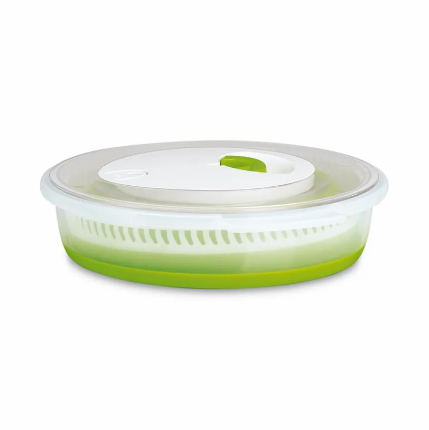 Mit der Salatschleuder Basic von Emsa gelingt Ihnen die Zubereitung von knackigem Salat noch leichter. Innerhalb kürzester Zeit können Sie Salatblätter schleudern und so fertig für das Anrichten machen. Dank des Faltmechanismus lässt sich die Salatschleuder Basic von Emsa platzsparend im Regal aufbewahren.