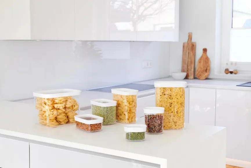 Wenn Sie Knäckebrot, Nudeln, Cerealien und andere trocken zu lagernde Nahrungsmittel hygienisch, luftdicht und vor Schädlingen geschützt verstauen möchten, ist die Vorratsdose Optima von emsa eine sehr gute Wahl. Dank des transparenten Materials können Sie den jeweiligen Inhalt sofort erkennen, ohne erst den Deckel des Behältnisses öffnen zu müssen. Zudem lässt sich die praktische Vorratsdose Optima ordentlich in Schubladen oder Küchenschränken unterbringen.