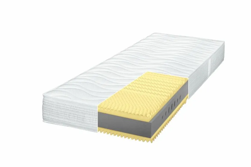 - 7-Zonen-Aufbau mit Waterpur50-Kaltschaumkern (Höhe: 12 cm ) und beidseitiger Kaltschaum-Noppenplatte (Höhe: 4 cm) für eine optimale Körperunterstützung mit RG 40