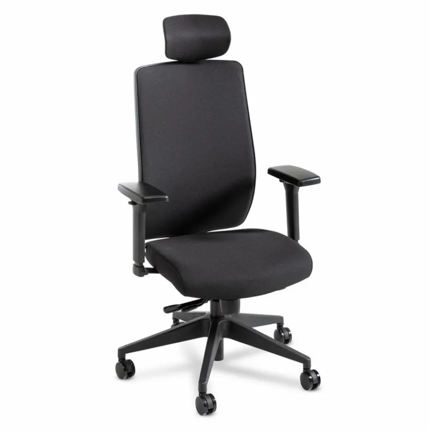- Inkl. höhenverstellbarer Rückenlehne, Lendenwirbelstütze und 4D-Armlehnen