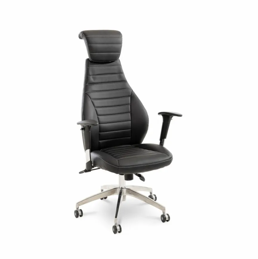 - Mit höhenverstellbarer Kopfstütze und Armlehnen