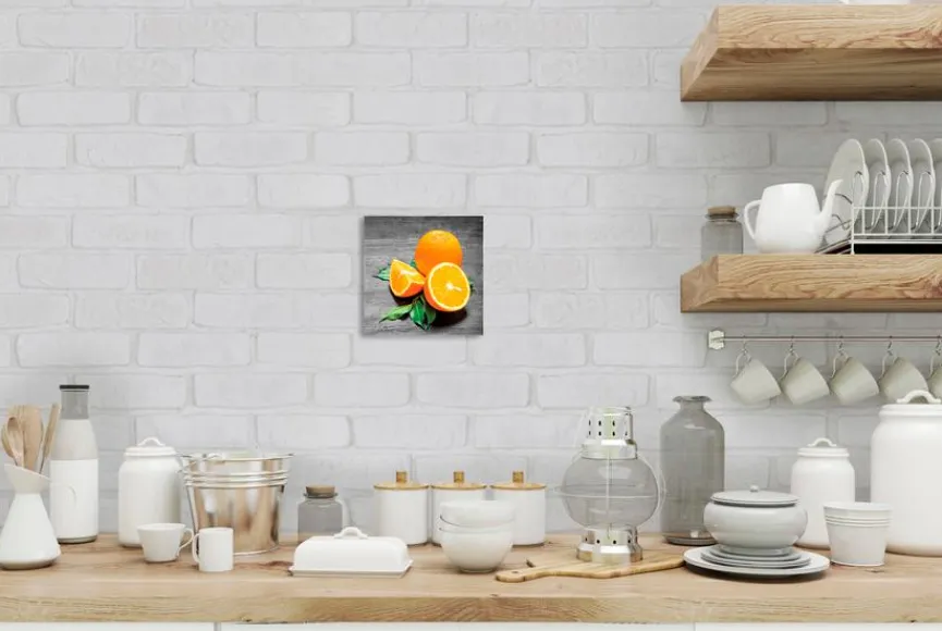 Kulinarische Stillleben wie beim Glasbild 20×20 cm Fresh orange der Marke EUROART machen in der Küche und im Esszimmer eine prächtige Figur. Dabei begeistert dieses Modell mit seiner trendstarken Bildkomposition und dem modernen Material. Sie können das Glasbild 20×20 cm Fresh orange von EUROART einzeln hängen oder andere Küchenmotive damit kombinieren.