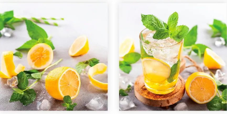 EUROART Bilder Ohne Rahmen|Bilder Nach Themen|Glasbild 2tlg. Fresh lemonade