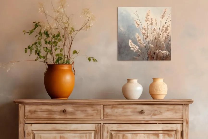 Mit dem Wandbild 30×30 cm Soft Nature On Silver II von EUROART zieht eine stimmungsvolle, herbstliche Atmosphäre voll sanfter Töne in Ihr Ambiente ein. Dieses kleine Deko-Bild wird zum stilvollen Stimmungsaufheller, egal, in welchem Raum Sie es platzieren. Mit seinem quadratischen Format passt das Wandbild 30×30 cm Soft Nature On Silver II besonders gut an schmale Wände.