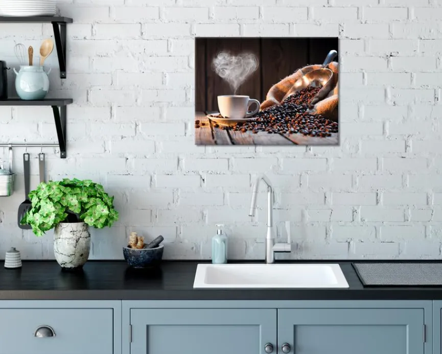 Wer seiner Liebe zum koffeinhaltigen Muntermacher Ausdruck verleihen möchte, kann das mit dem ästhetisch gestalteten Wandbild 30×40 cm Coffee XVI von EUROART auf die schönste Weise tun. Das Deko-Bild besticht durch seine brillante Druckqualität und es spricht dank seiner kunstvollen Gestaltung die Sinne an. Besonders für den Küchen- oder den Essbereich eignet sich das Wandbild 30×40 cm Coffee XVI.