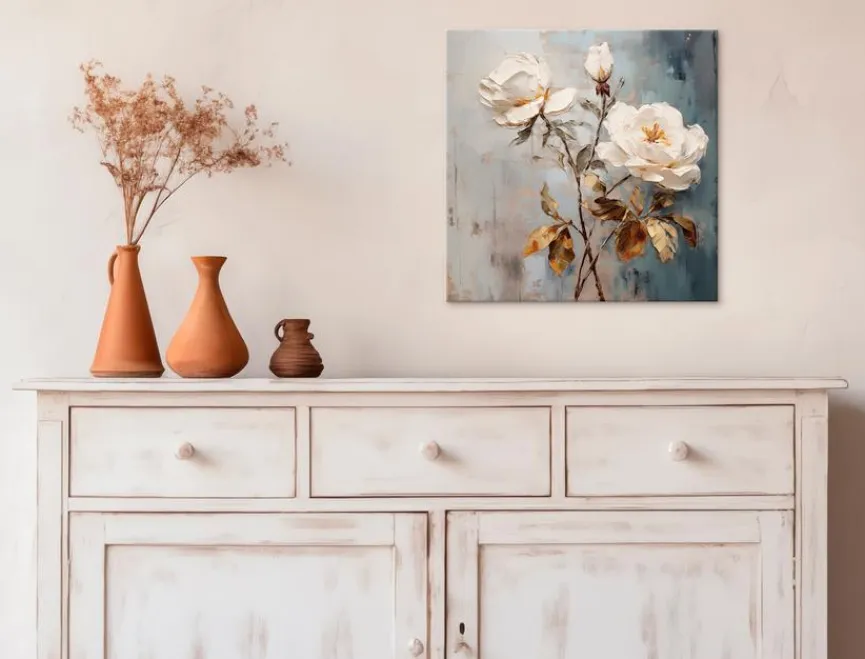 Das Wandbild 30 x 30 cm Roses On Grey III von EUROART ist ein stilvolles Highlight für jede Wand. Mit seinen kompakten Maßen fügt sich das Deko Bild perfekt in verschiedenste Raumkonzepte ein. Das elegante Blumendesign in sanften Grau- und Weißtönen verleiht dem Zuhause eine edle und beruhigende Atmosphäre. Durch das Wandbild 30 x 30 cm Roses On Grey III wird die Wohnung stilvoll aufgewertet.
