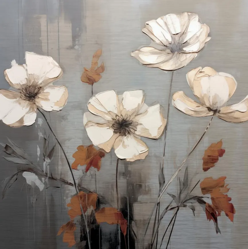 EUROART Wandbild 30 x 30 cm White Flowers On Silver I