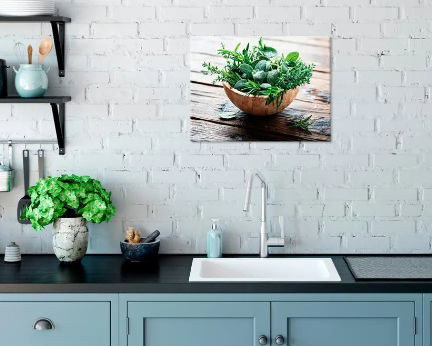 Das Wandbild 30×40 cm Fresh Herbs III der Marke EUROART präsentiert sich als frischer Blickfang für Ihre Küchen- oder Esszimmereinrichtung. Mit seinem Motiv inspiriert das Deko Bild zum Würzen mit frischen und aromatischen Kräutern. Außerdem gefällt das Wandbild 30×40 cm Fresh Herbs III von EUROART durch sein harmonisches Farbkonzept.
