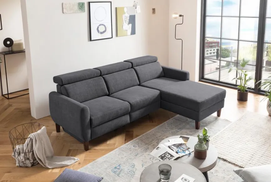 - Ecksofa besteht aus 2-Sitzer mit Armlehne links, Longchair mit Armlehne rechts