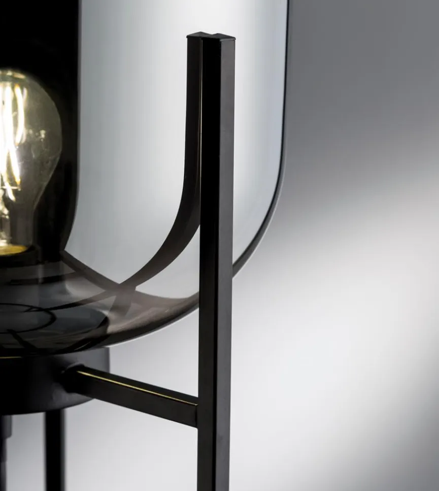 Mit der Tischleuchte REGI präsentiert Honsel ein echtes Designerstück. Die markante Formensprache und der rauchfarbene Glasschirm lassen die Tischlampe zu einem optischen Highlight in Ihrer Einrichtung werden. Das Ein- und Ausschalten gelingt bei der Tischleuchte REGI aus dem Hause Honsel bequem per Schnurschalter.