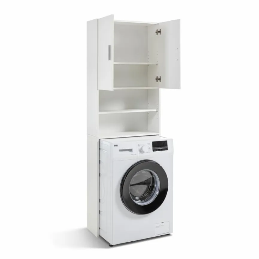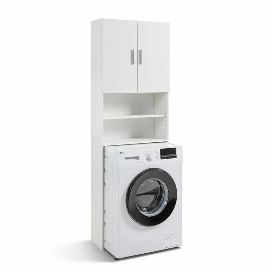 Mit dem Waschmaschinenüberbauschrank Nassau der Marke FMD nutzen Sie den Platz optimal aus, denn Ihr Gerät lässt sich ganz einfach darin integrieren. Der Waschmaschinenschrank bietet Ihnen hinter zwei Türen ausreichend Stauraum für Ihre Wasch- und Putzutensilien und besitzt zusätzlich noch zwei offene Fächer. Besonders gut passt der Waschmaschinenüberbauschrank Nassau zu modernen, schnörkellosen Einrichtungskonzepten.