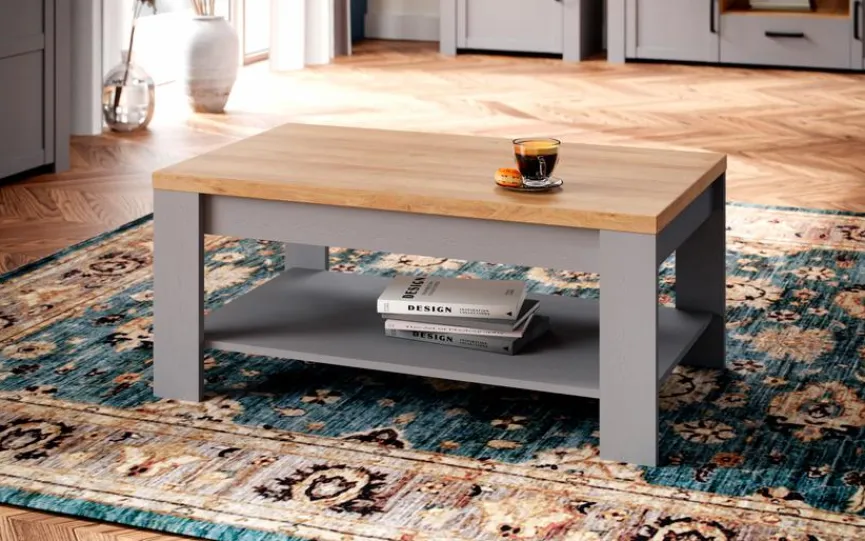 - Korpus besteht aus Holzwerkstoff (Spanplatte) in Eiche Grau. Front besteht aus Holzwerkstoff (Spanplatte) in Riviera Eiche