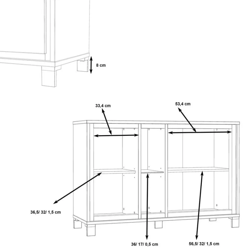- Mit 2 Holztüren, 1 offenen Fach, 1 Glaseinlegeboden, 2 Holzeinlegeböden