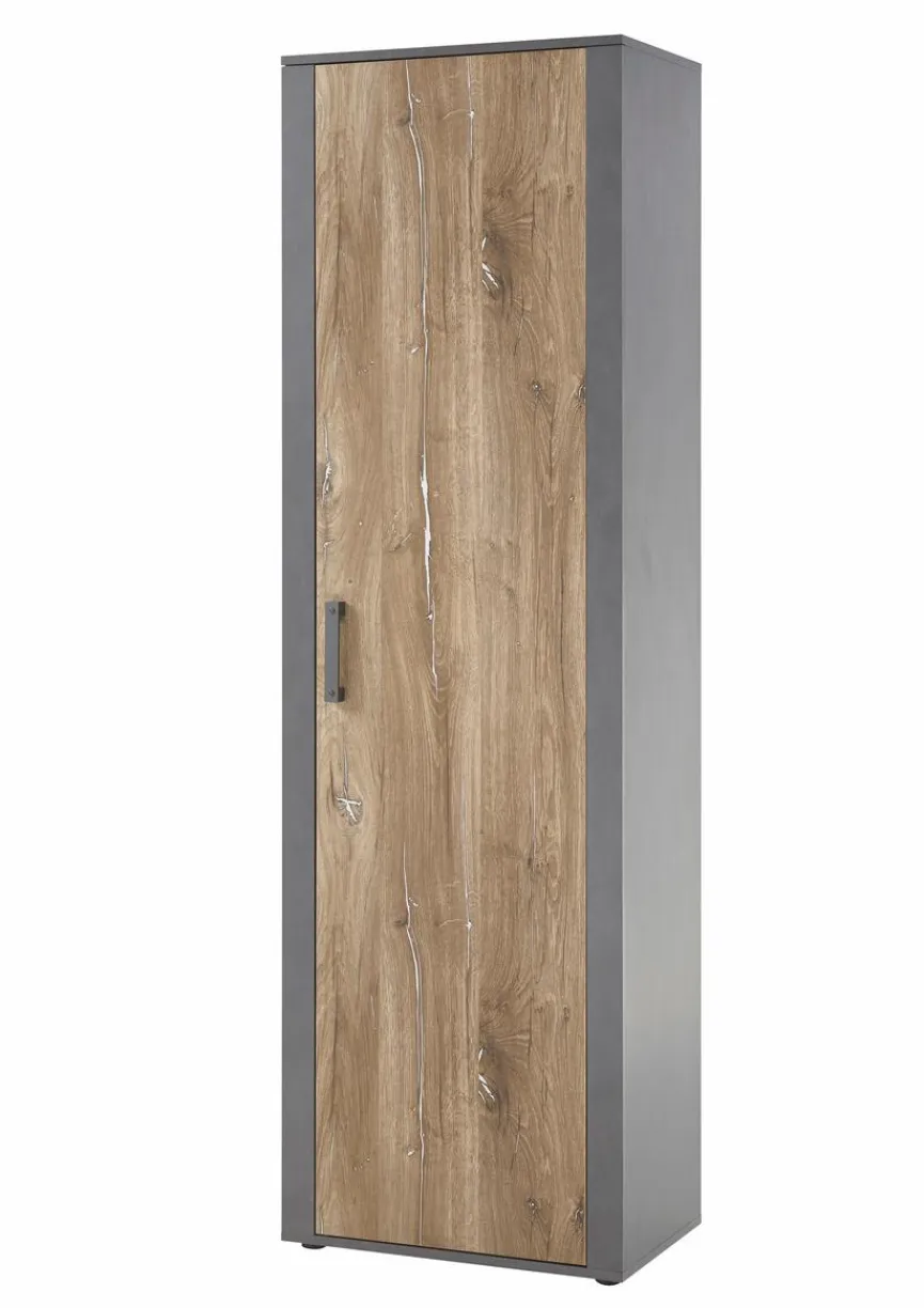 Der Garderobenschrank Athen begeistert durch ein trendiges Äußeres im angesagten Used-Look. Geprägt wird das Design des Dielenschranks vom markanten Dekor in Echtholzoptik und der puristischen Formensprache. Darüber hinaus bietet der Garderobenschrank Athen viel praktischen Stauraum und sorgt dank sinnvoller Aufteilung des Inneren für Ordnung.
