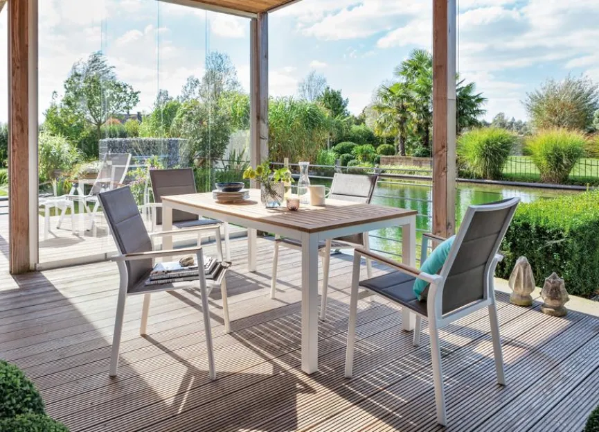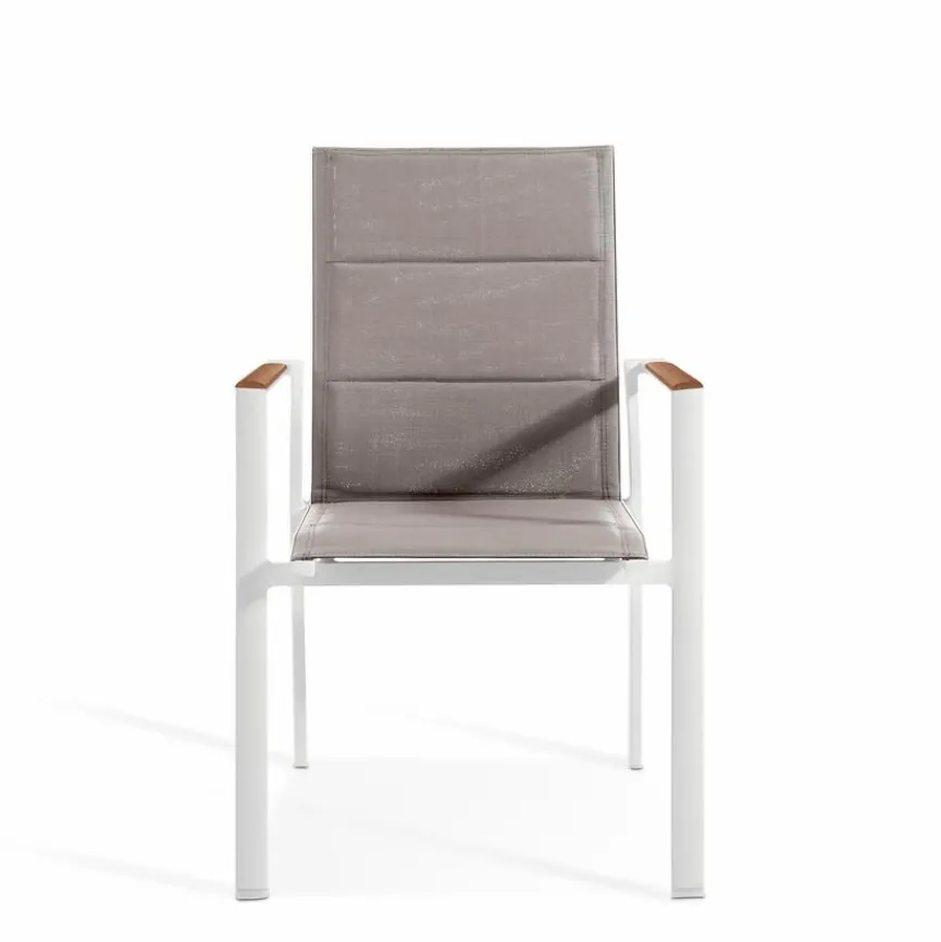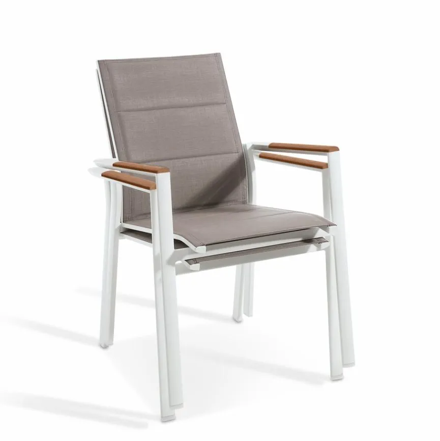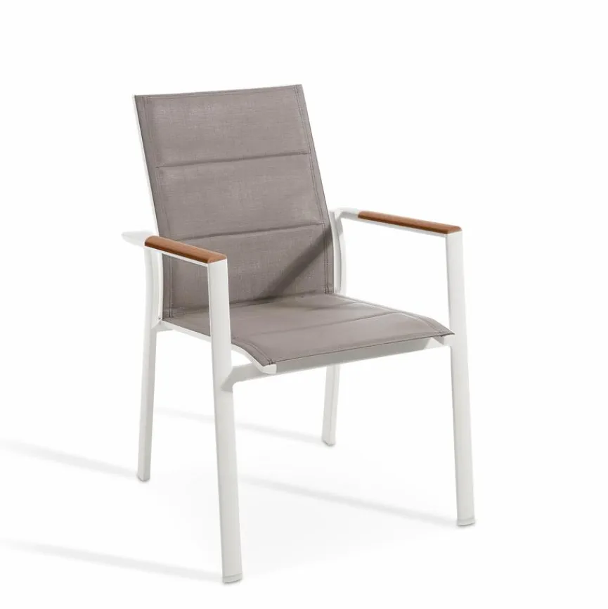 - Armlehnen aus Teak – Zertifizierung nach „FSC®“, Fußkappen aus Kunststoff, stapelbar