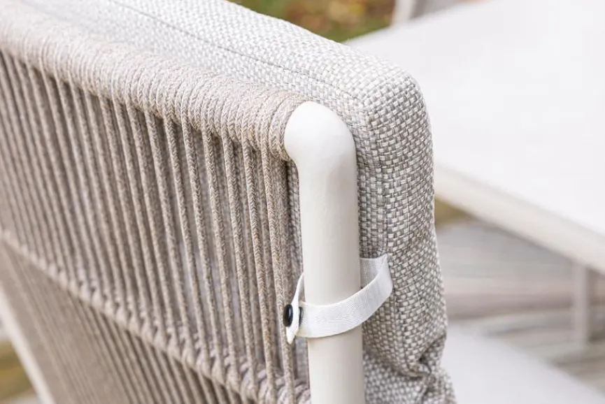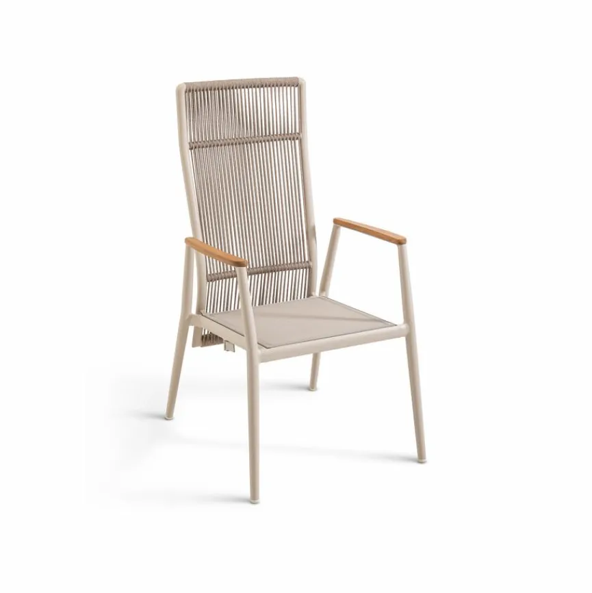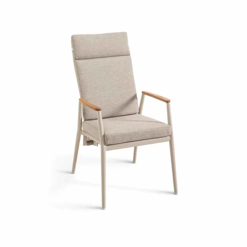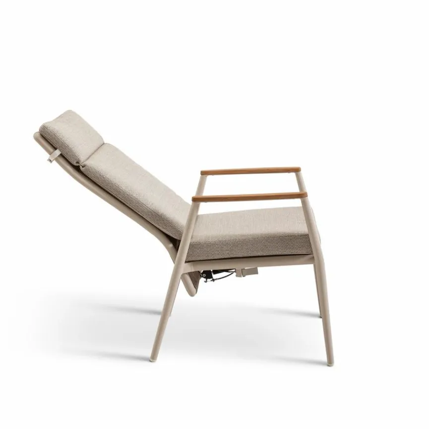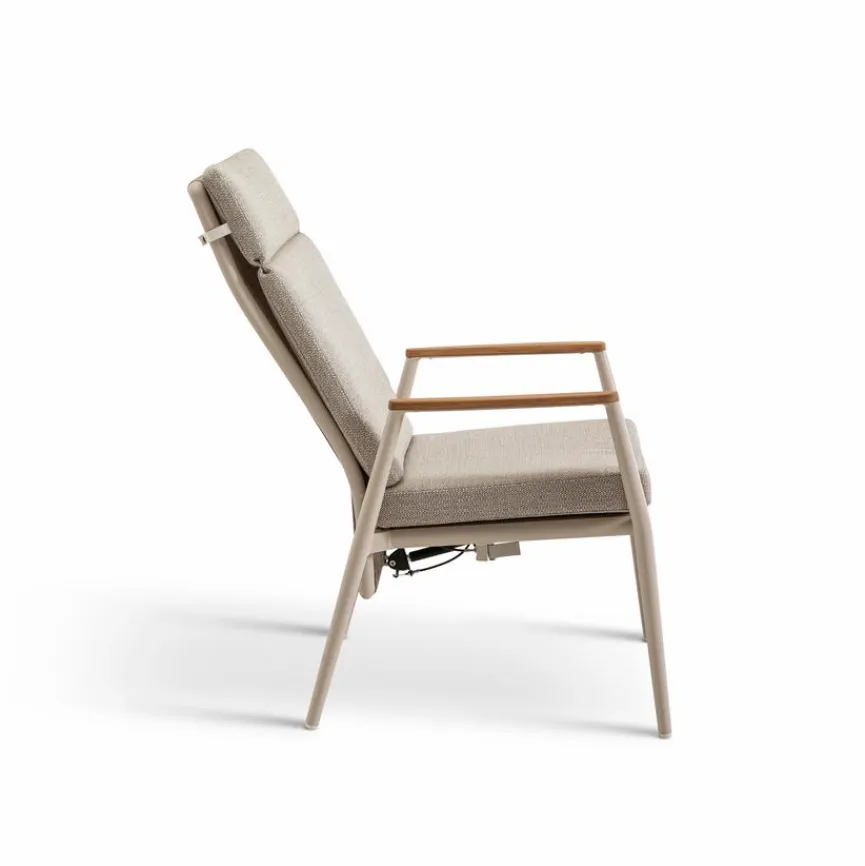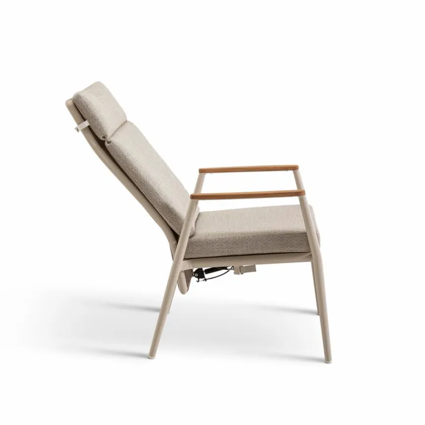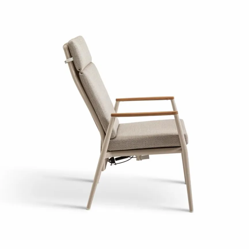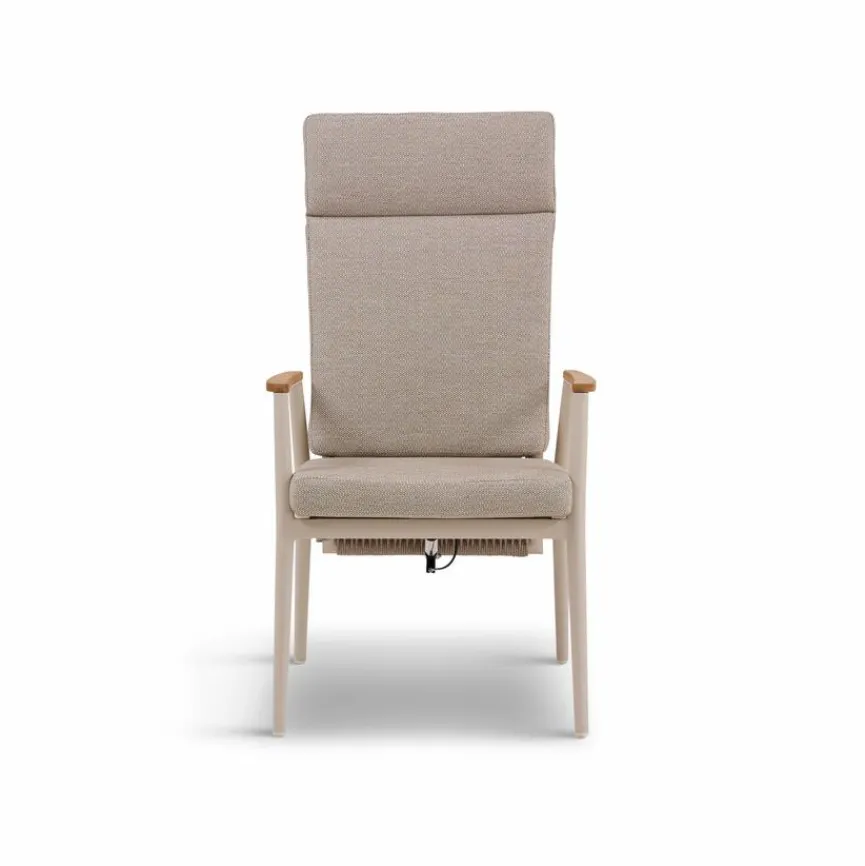 - Gestell aus Aluminium in creamy mit Teakarmlehnen