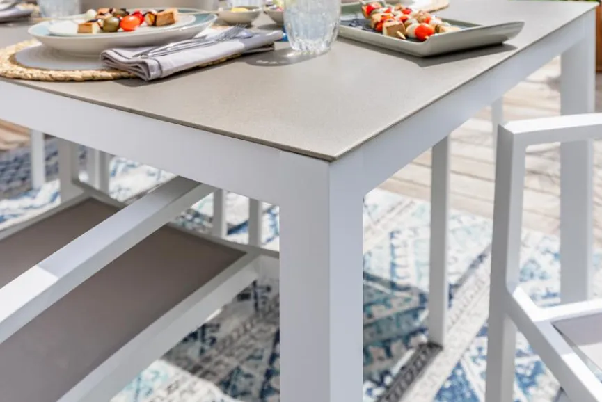 Mit dem Gartentisch Cayo 160×90 cm können viele schöne Gartenfeiern kommen. An der großzügig gestalteten Tischplatte finden viele Freunde oder Familienmitglieder ihren Platz. Das robuste Aluminiumgestell hält einiges an Belastungen aus und macht den Gartentisch Cayo 160×90 cm zu einem langlebigen Möbelstück.
