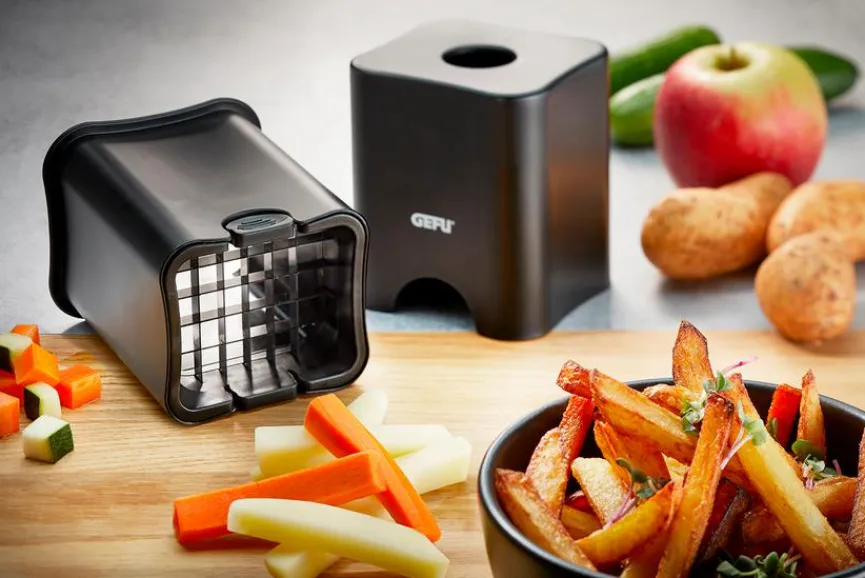 Der Gemüseschneider Pomcut aus dem Hause GEFU ist ein optimaler Helfer in jeder Küche, wenn Sie gerne selbstgemachte Pommes Frites oder Rohkostsalate lieben. Mit dem japanischen Klingenstahl schneidet er auf leichte Weise jedwedes Obst oder Gemüse, das sich für Würfel oder Stäbchen eignet. Gefallen kann der Gemüseschneider Pomcut von GEFU zudem durch seine kompakte Bauweise.