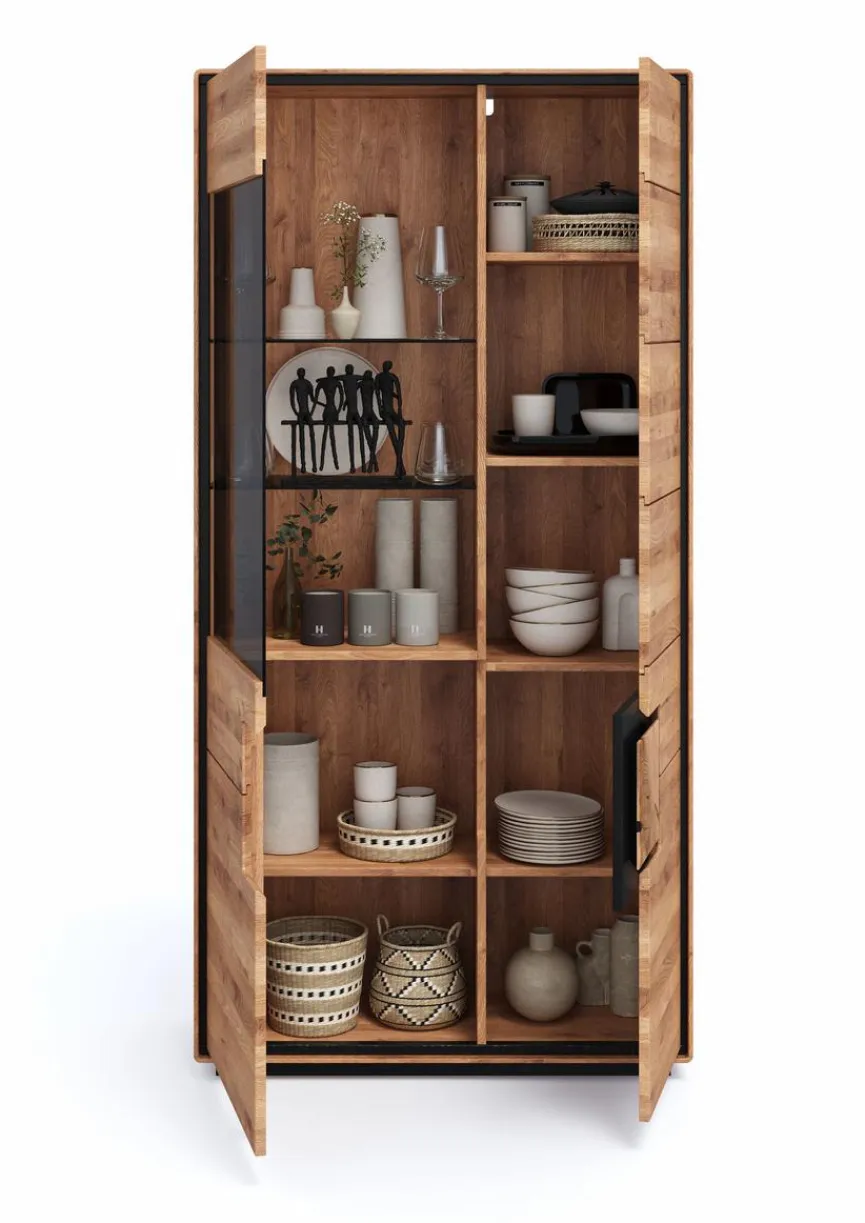 Mit ihrer attraktiven Holzoptik lässt die Vitrine Toronto von G+K ein ebenso geschmackvolles wie behagliches Ambiente entstehen. Auch das stilsicher arrangierte Element in quadratischer Form fügt sich nahtlos in das ansprechende Erscheinungsbild dieser Glasvitrine ein. Dank dieser schicken Optik ist die Vitrine Toronto eine hervorragende Präsentationsfläche für unterschiedlichste Dekoartikel.