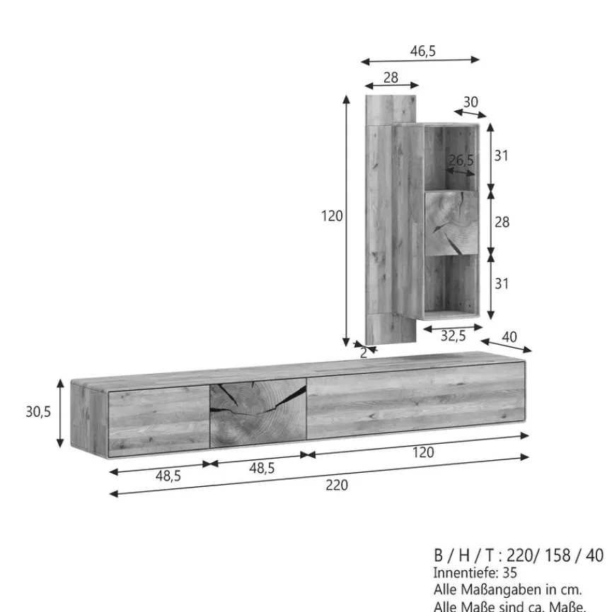 - Wohnwand besteht aus TV-Lowboard, Wandboard
