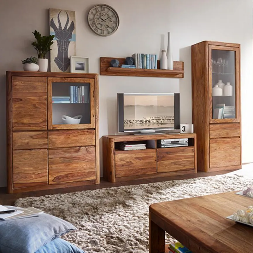 - Aus massivem und gebeiztem Sheesham mit Klarglas