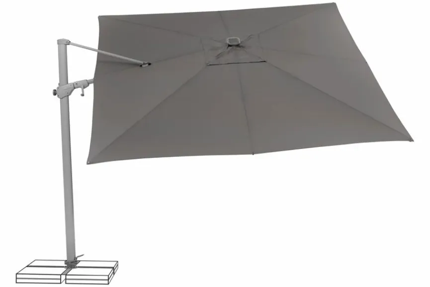 - Inkl. Ständerkreuz mit Drehfuss um 360º Grad drehbar, mit Kurbel kann das Schirmdach nach links und rechts stufenlos geschwenkt werden, durch Schieber kann das Schirmdach zum Mast geneigt werden, Strebe mit integriertem LED-Streifen