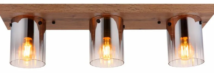 Die Deckenleuchte Underwood aus dem Hause Globo bietet sowohl schnörkellosen Chic als auch gemütliche Rustikalität. Drei Glaszylinder und ein kantiger Sockel in Holzoptik prägen den kontrastreichen Charme dieser Deckenlampe. Mit dieser angesagten Designidee passt die Deckenleuchte Underwood unter anderem wunderbar in ein Zimmer im modernen Alpin-Look.