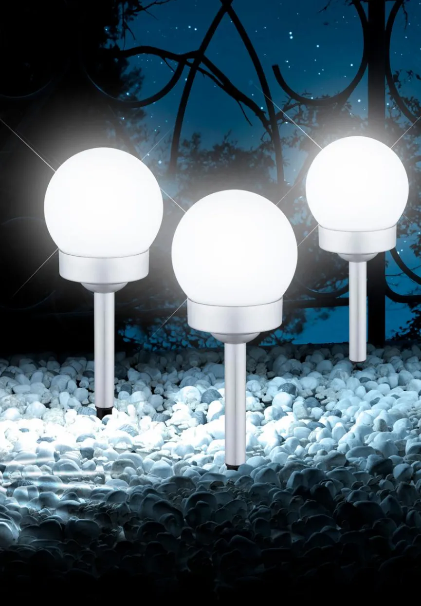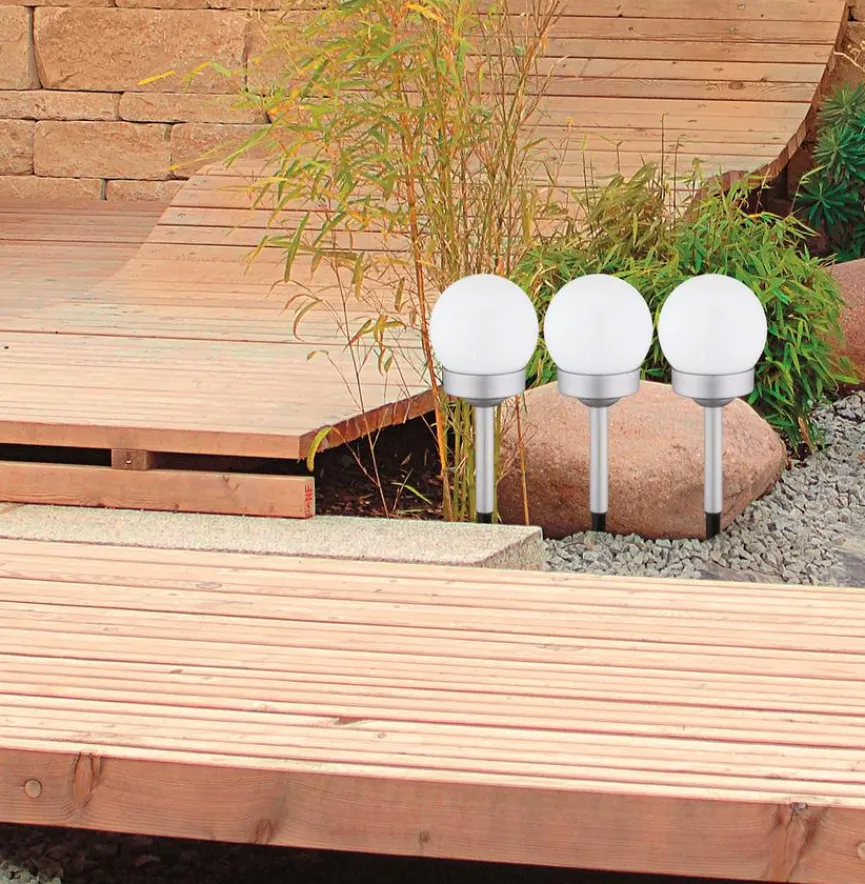Für eine stimmungsvolle Beleuchtung im Außenbereich sorgt das Erdspieß 3er-Set der Marke Globo. Das Erdspiess-Trio setzt schöne Lichtakzente und hilft zum Beispiel dabei, bei Dunkelheit Wege, Stufen und Eingänge zu markieren. Dank der eleganten kugelförmigen Lampe fügt sich das Erdspieß 3er-Set harmonisch in den Umraum ein.