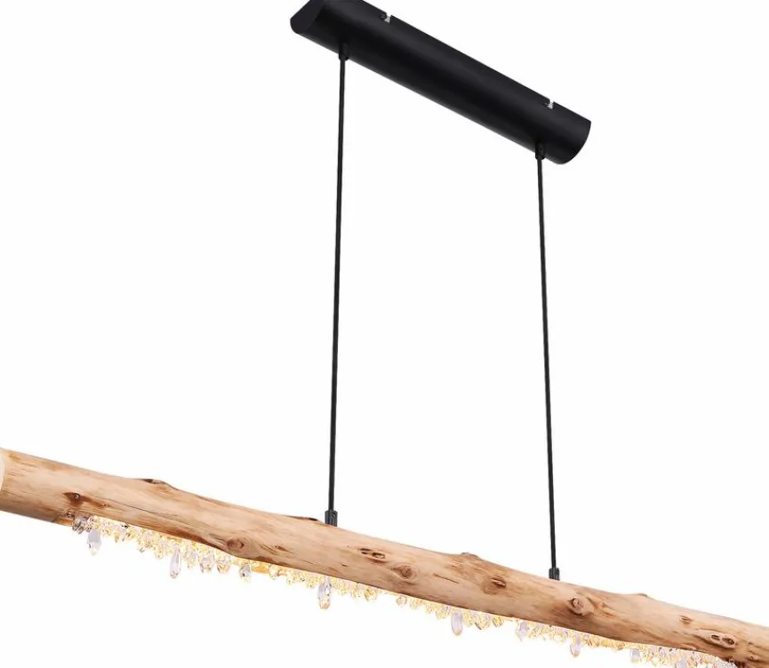 Mit der Globo LED-Pendelleuchte Felicitas kommt ein stilvoll designter Artikel in Ihr Zuhause. Dank der modernen Gestaltung mit einem zylinderförmigen Holzbalken, an dem kleine Acrylkristalle und Lichter befestigt sind, hinterlässt die LED-Pendellampe einen raffinierten Eindruck. Wenn Sie die LED-Pendelleuchte Felicitas von Globo in Betrieb nehmen, wird dieses Schmuckstück garantiert die Blicke auf sich ziehen.