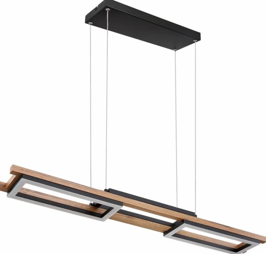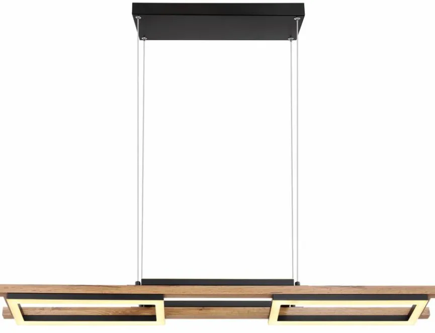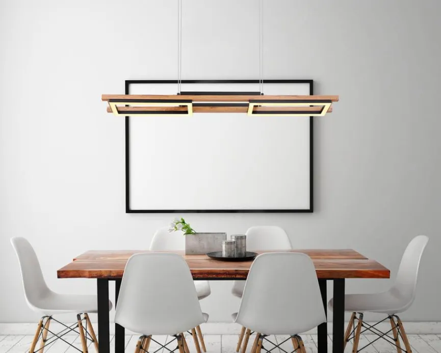 Die LED-Pendelleuchte Illa aus dem Hause Globo bringt Eleganz und moderne Gemütlichkeit mit sich. Filigrane Seile, rahmenartige Strukturen und Akzente in Holzoptik sind die stilprägenden Designelemente dieser famosen LED-Pendellampe. Über einem Tisch im geradlinigen Chic aufgehängt, lässt sich die LED-Pendelleuchte Illa zum Beispiel exzellent zur Geltung bringen.