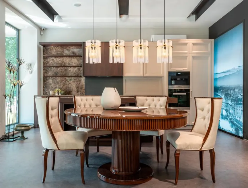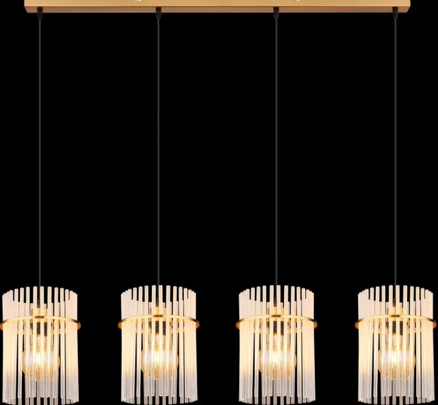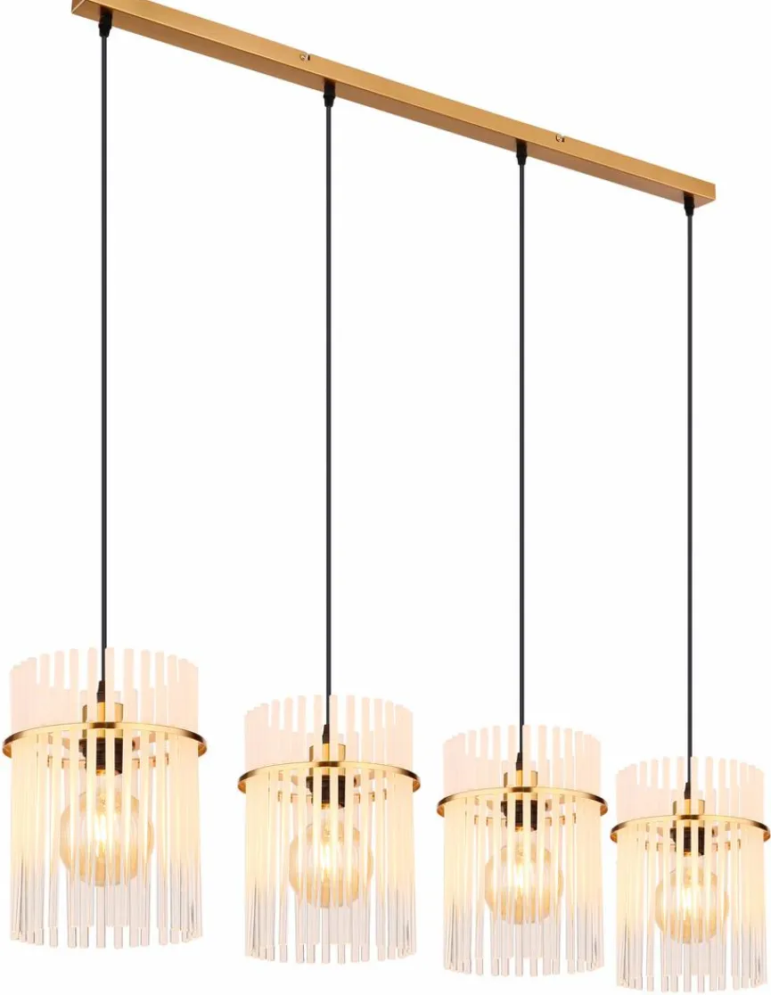 Die Pendelleuchte Gorley von Globo lenkt mit eleganten Schirmen aus Stäbchen die Blicke auf sich. Über einem länglichen Tisch im Esszimmer kann diese Pendellampe zum Beispiel wunderbar zur Geltung kommen. Als Ergänzung zu einem anderen Objekt aus dieser Kollektion ist die Pendelleuchte Gorley natürlich ebenfalls eine besonders schöne Option.