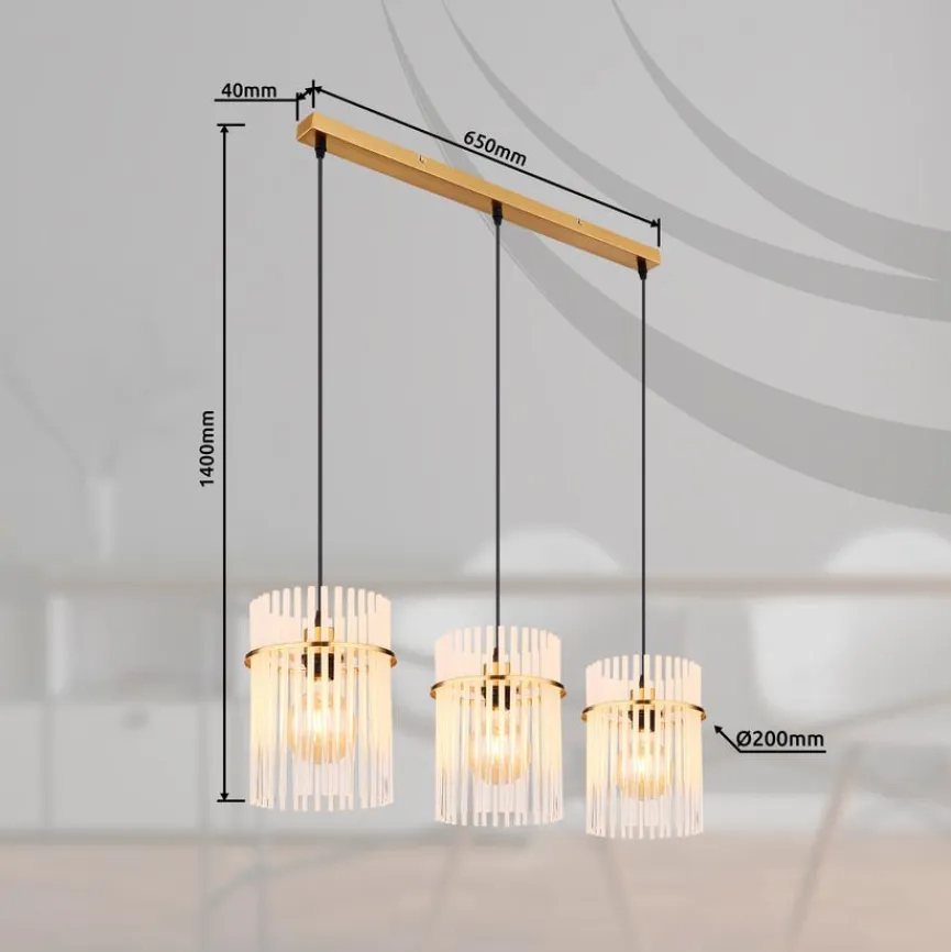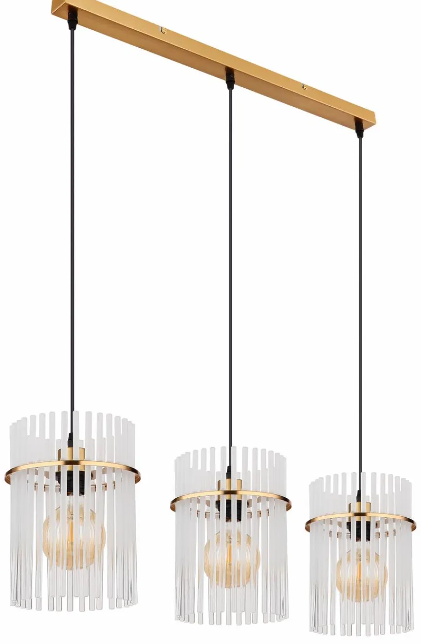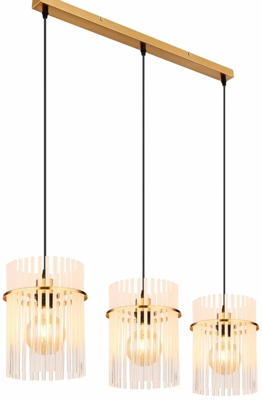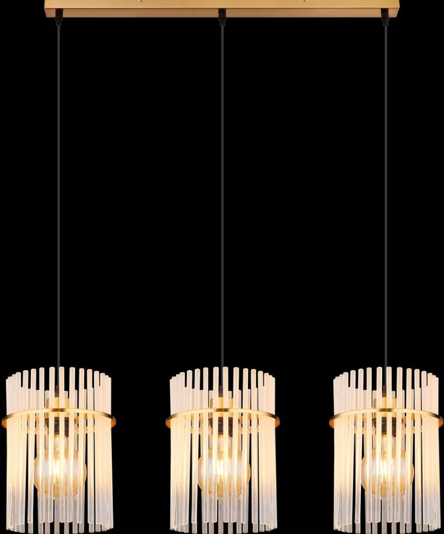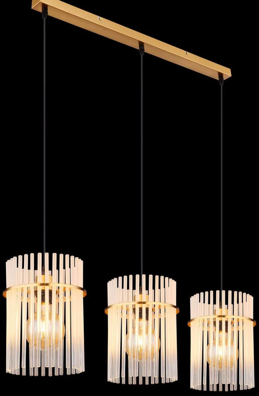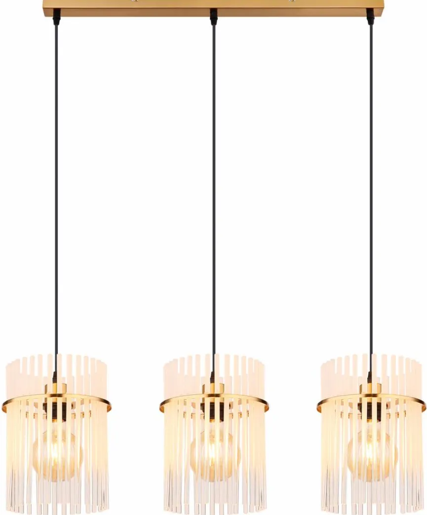 Die elegant und kunstvoll gestaltete Globo Pendelleuchte Gorley bringt famose Lichteffekte mit sich. Filigrane Glasstäbe bilden die drei hintereinander angeordneten Schirmchen dieser Pendellampe. Kombinieren Sie die Pendelleuchte Gorley mit edlem Interieur im puristischen Chic oder mit Möbeln, die mit ausgesuchten Vintage-Akzenten auf sich aufmerksam machen.