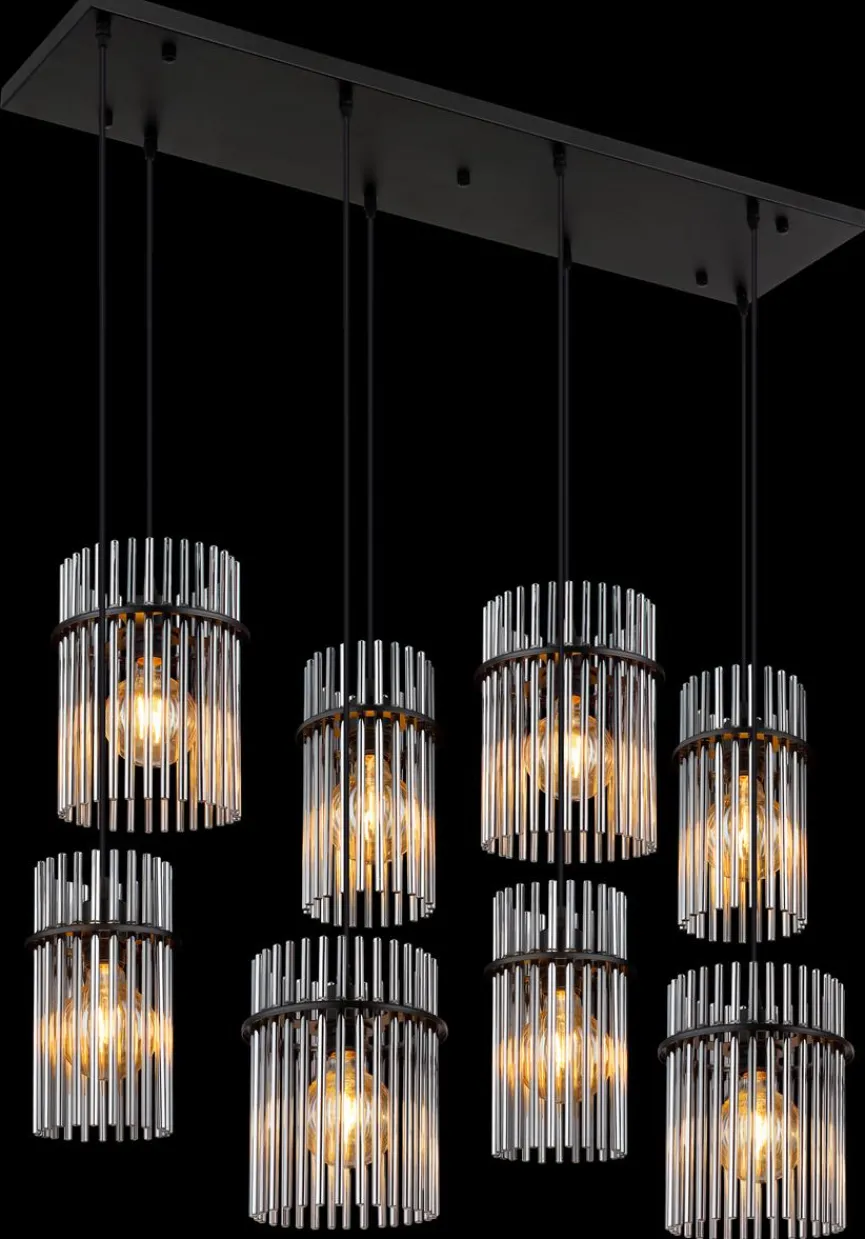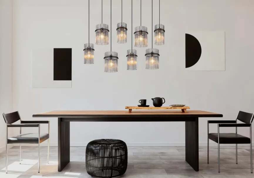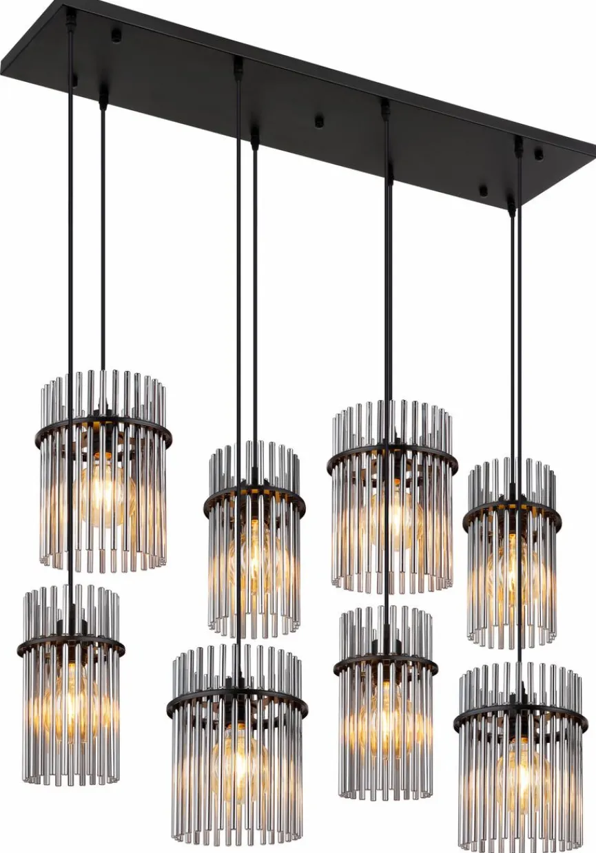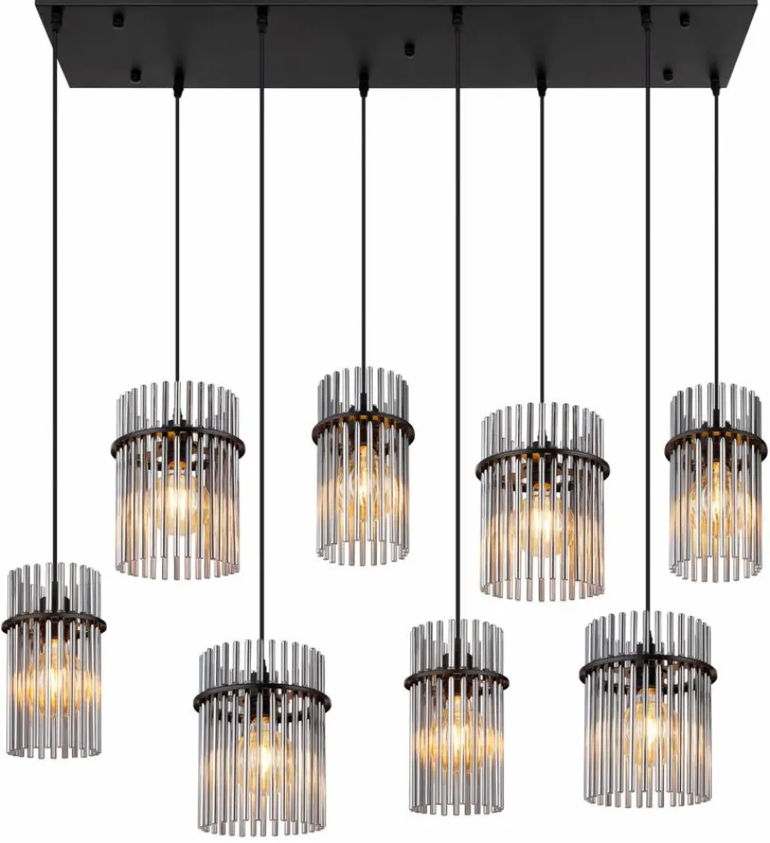 Die Pendelleuchte Gorley aus dem Hause Globo verkörpert Eleganz und stilvollen Chic. Filigrane Glasstäbchen, die acht zylinderförmige Schirme bilden, prägen im Wesentlichen das faszinierende Erscheinungsbild dieser Pendellampe. Für ein modernes Esszimmerumfeld mit ausgesuchten Akzenten im Vintage-Look ist die Pendelleuchte Gorley zum Beispiel eine fantastische Option.