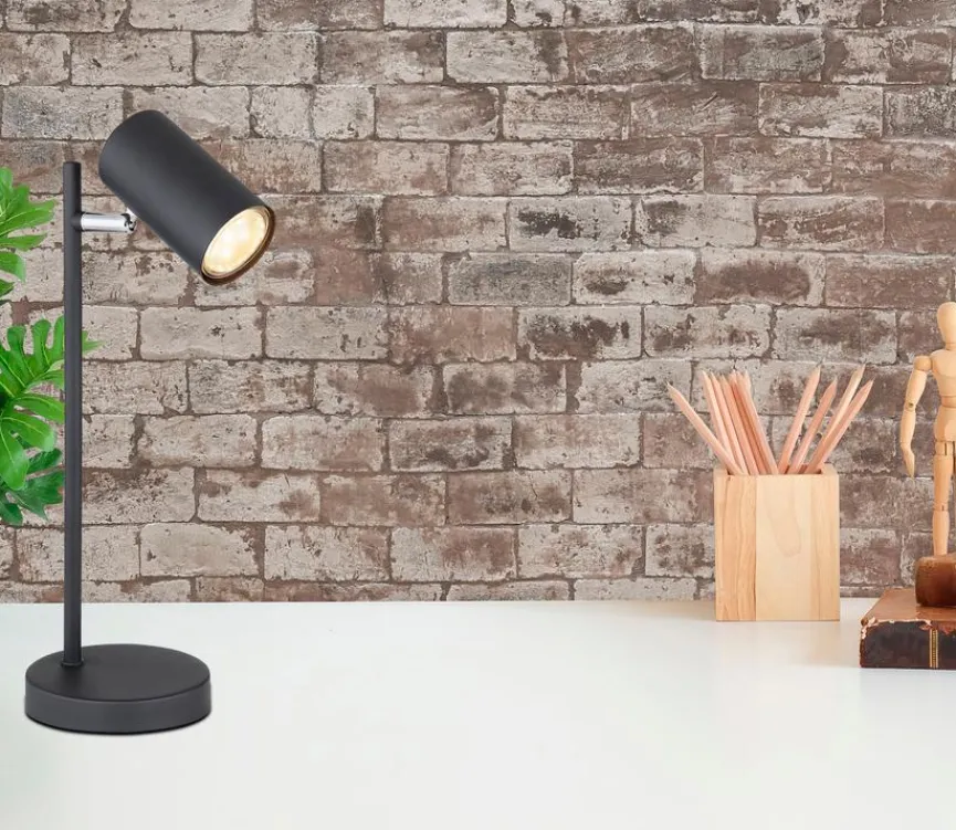 Globo hat mit der Tischleuchte Robby eine kompakte Tischlampe gestaltet, die perfekt für den Nachttisch in modernen, geradlinig eingerichteten Schlafzimmern ist. Ihre GU10-Fassung für energiesparende Leuchtmittel ist schwenkbar und kann somit flexibel ausgerichtet werden. Die Tischleuchte Robby von Globo macht mit ihrem minimalistischen Design aber nicht nur als Leselampe eine gute Figur, denn sie kann auch zur gezielten Akzentbeleuchtung eingesetzt werden.