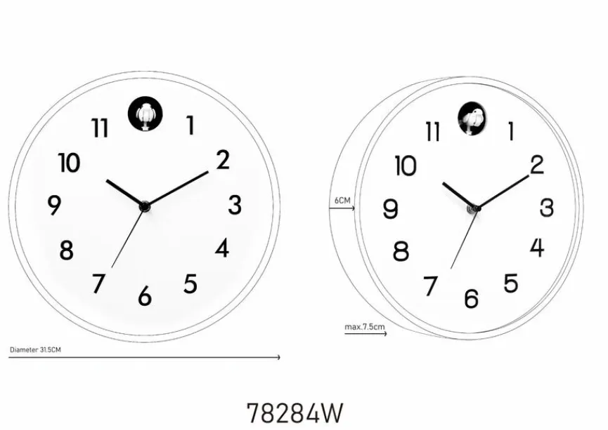 Die Wanduhr 78284 Ø 32 cm aus dem Hause Globo wirkt modern und sachlich, bringt aber auch eine originelle Note mit sich. Eine Kuckucksfunktion sorgt hier für Charme und Witz. In eine Wohnung mit Interieur im freundlichen Scandi-Style passt die Wanduhr 78284 Ø 32 cm zum Beispiel ausgesprochen gut.
