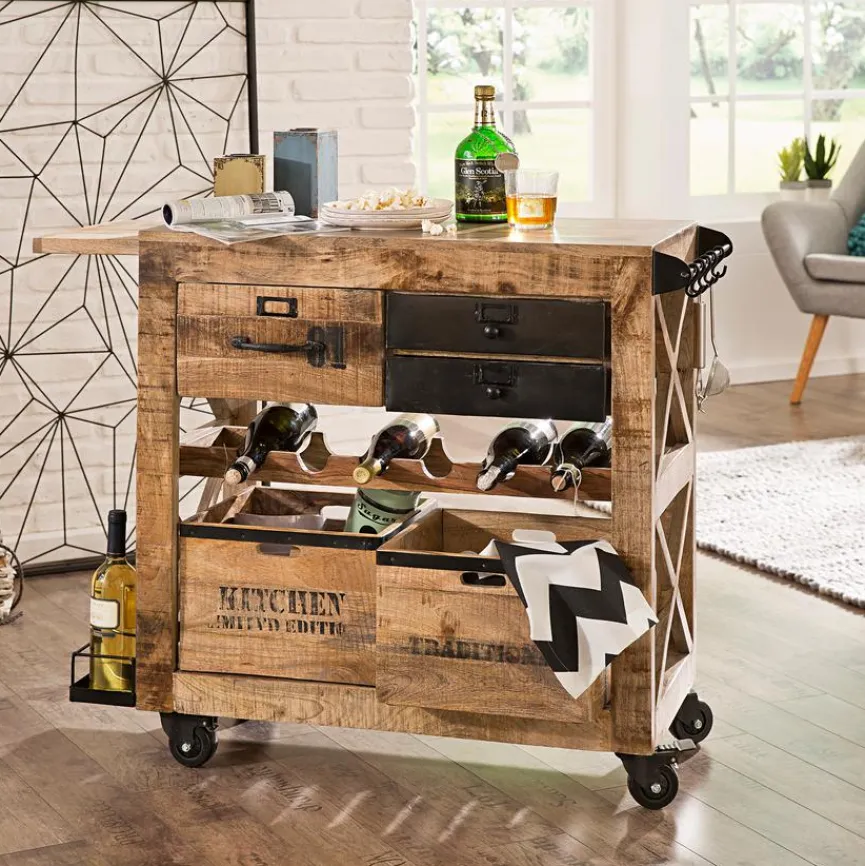 - Mit 3 Schubladen, Ablage für 6 Flaschen, 5 Haken