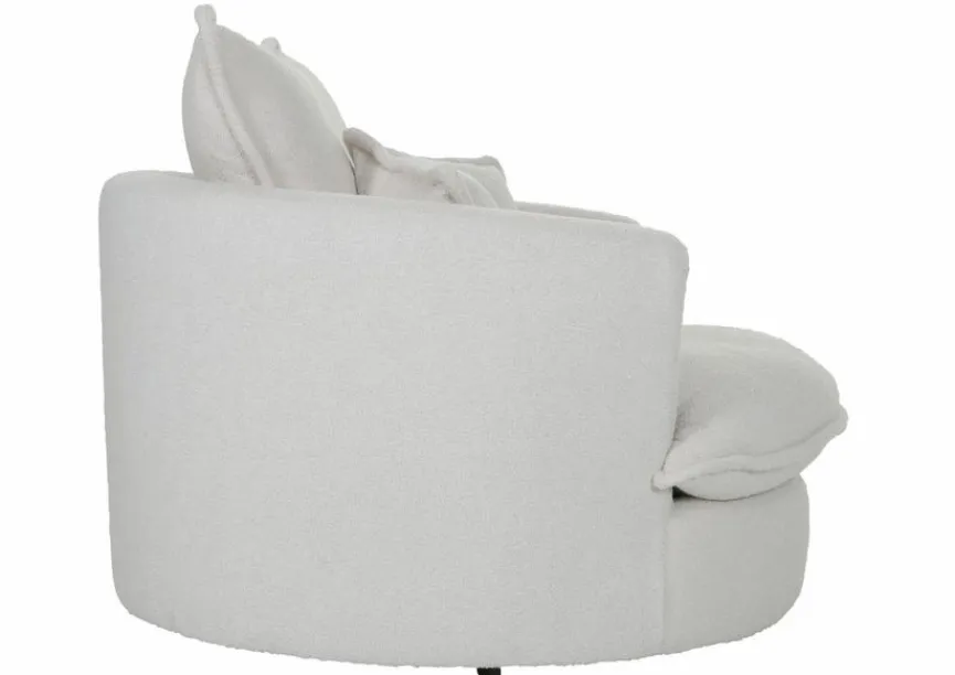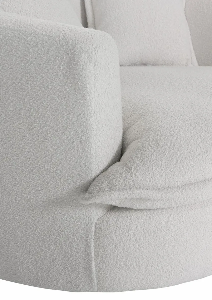 Eine gelungene Kombination aus Gestaltungselementen der Siebzigerjahre und modernem Möbeldesign zeigt der leicht flauschige Sessel Cody von Gutmann Factory. Sein halbrunder Korpus ist mit softem Bouclé-Stoff bezogen, der diesem Polstersessel eine wohnlich-weiche Haptik beschert. Drei lockere Rückenkissen und ein extra weiches Sitzkissen lassen den Sessel Cody schnell zum komfortablen Lieblingsplatz für relaxte Ruhepausen und gemütliche Stunden mit einem guten Buch oder einem Drink werden.