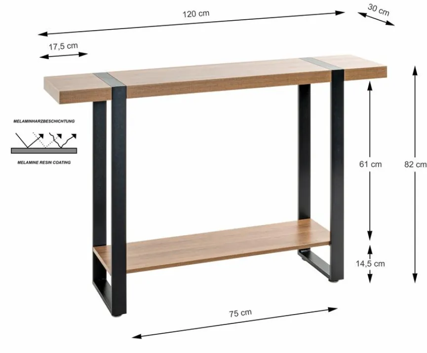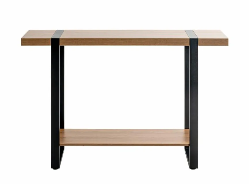 Zwei Ablagen in attraktiver Holz-Optik verleihen dem Konsolentisch Saragossa eine überaus ansprechende Optik. Auch das schicke pulverbeschichtete Metallgestell fügt sich nahtlos in den geschmackvollen Look dieses Beistelltisches ein. Darüber hinaus dürfen Sie von dem erstklassig gefertigten Konsolentisch Saragossa eine Qualität erwarten, die selbst gehobenen Ansprüchen mehr als nur gerecht wird.