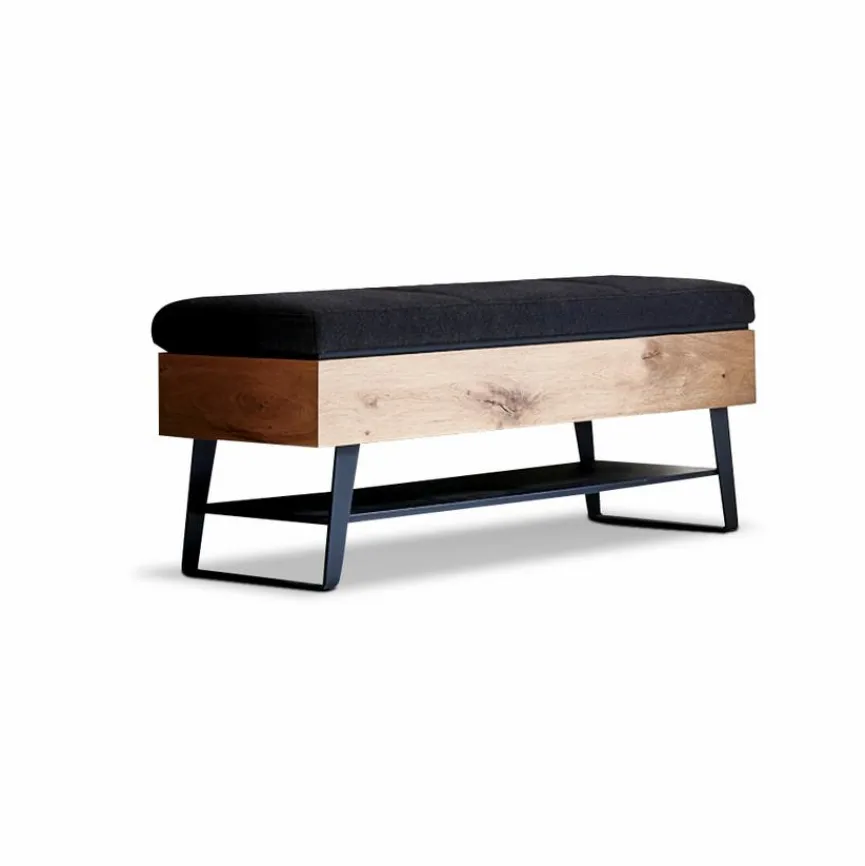 Die Garderobenbank Caya von Hartmann verbindet eine attraktive Optik mit einer hohen Funktionalität. Der gelungene Kontrast zwischen den Elementen aus Holz, anthrazitfarbenem Metall und Stoff verschafft der Umkleidebank ein ansprechendes Äußeres. Darüber hinaus ist die Garderobenbank Caya von Hartmann sehr stabil und robust.