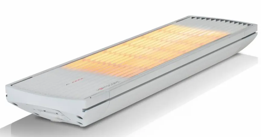 - Patentiertes Reflektor-Heiz-System mit hinterlüfteter Rückseite, Ausgestattet mit zwei energie-effizienten Doppel-Carbon-Heizelementen wird die maximale Leistung bereits 15 Sekunden nach dem Einschalten erreicht