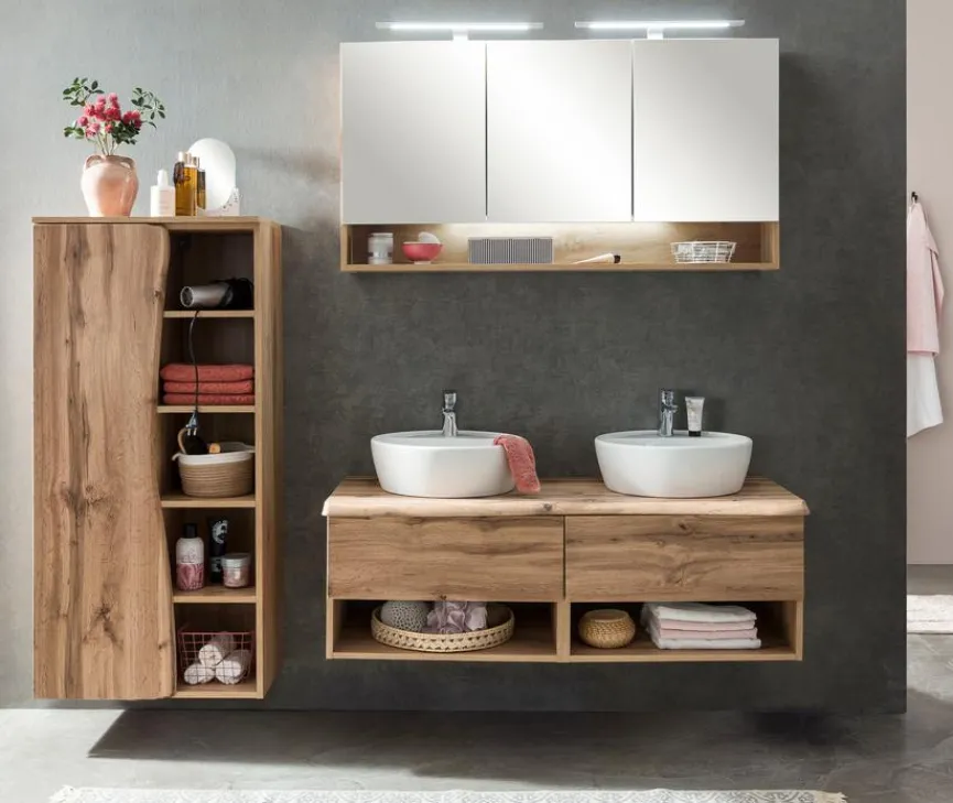 Der Waschtischunterschrank Sion aus dem Hause Held-Möbel ist eine spannende Option, wenn Sie Ihr Bad im urigen Chic gestalten möchten. Gemütliches Holz macht den naturverbundenen Charme dieses Badezimmerschranks aus, der mit zwei Keramik-Aufsatzbecken ausgestattet ist. Dank der Soft-Close-Funktion bietet der Waschtischunterschrank Sion zudem Vorzüge in puncto Bedienkomfort.