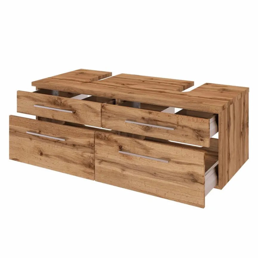 Der Waschtischunterschrank Davos ist das ideale Möbelstück für diejenigen, die noch mehr Stauraum im Badezimmer benötigen. In zwei großen Schubkästen dieses Badezimmerschrankes finden diverse Kosmetika, Reinigungsmittel und andere Utensilien ihren Platz. Dank eines Ausschnitts für den Siphon lässt sich der Waschtischunterschrank Davos unkompliziert platzieren.