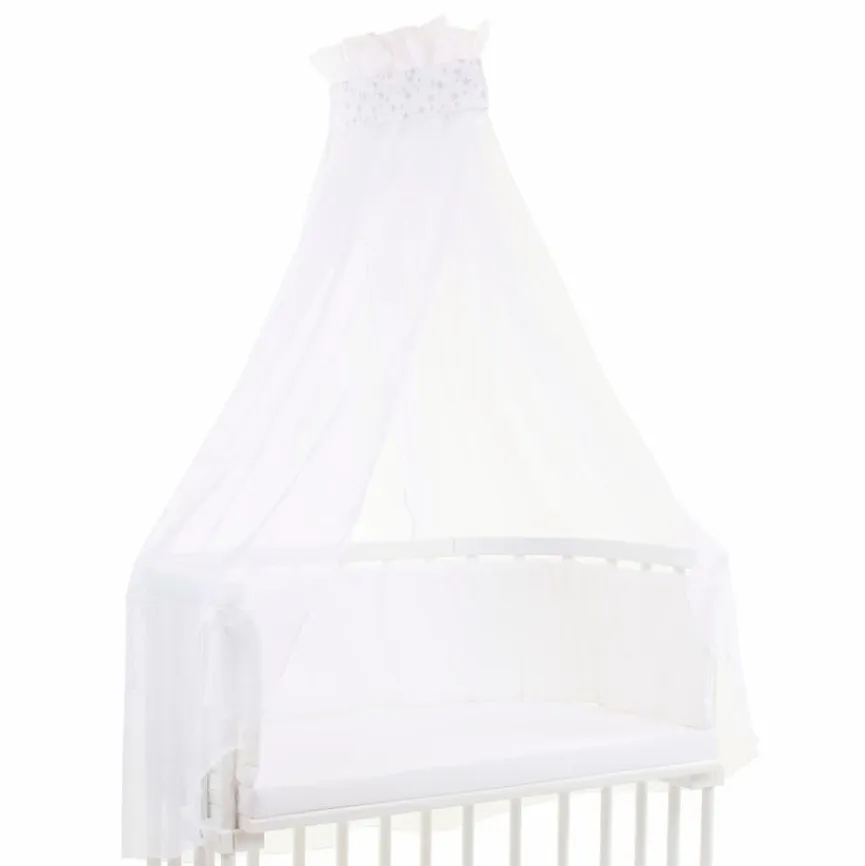 - Himmel in weiß, Bordüre aus Stoff in weiß mit Sternen in perlgrau