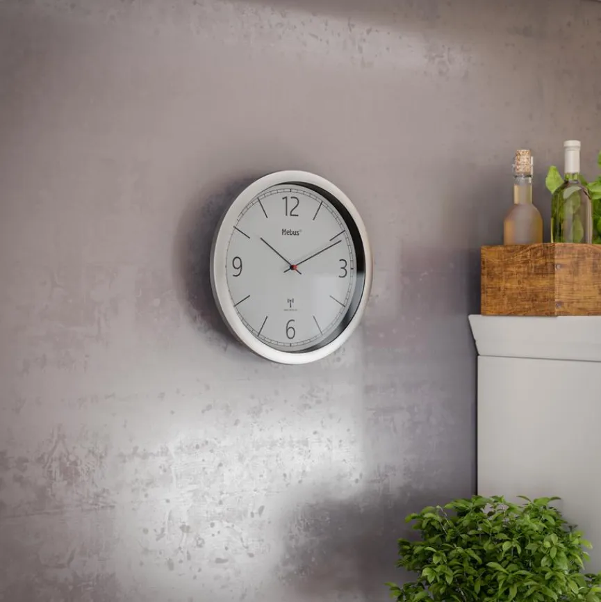 Die Funkwanduhr 19810 Ø 25,8 cm von Mebus lässt sich gut ablesen und wirkt herrlich schnörkellos. Ein schlichtes Zifferblatt mit Strichindizes und großen arabischen Ziffern auf vier Positionen bestimmen hier das Design. Mit diesem zeitlosen Look harmoniert die runde Funkwanduhr 19810 Ø 25,8 cm mit vielen modernen Einrichtungsstilen.