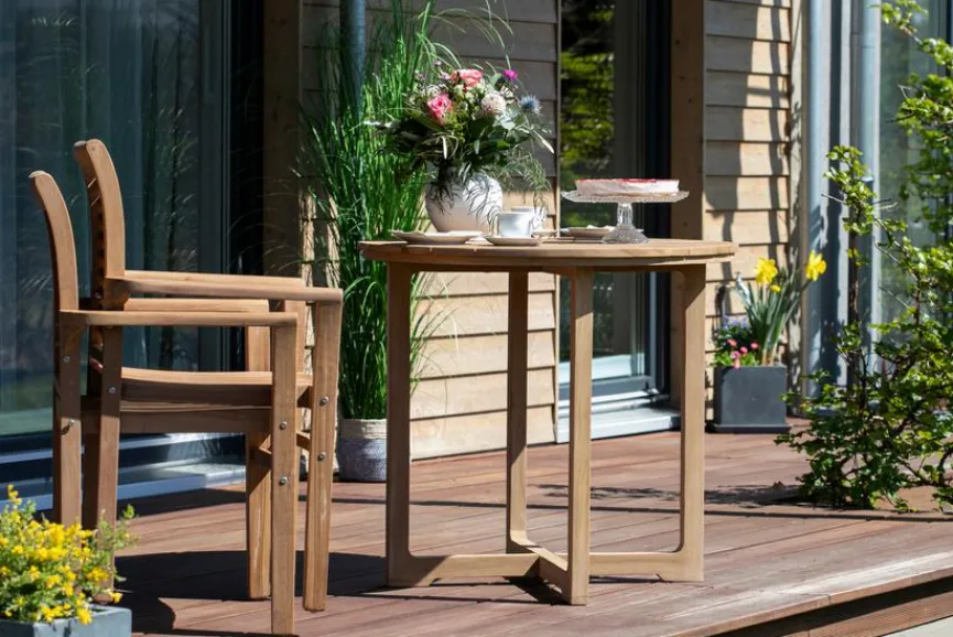 Holzmöbel sind die Klassiker unter den Gartenmöbeln. Liebhaber des langlebigen und flexiblen Naturmaterials schätzen seine warme Ausstrahlung, die für Gemütlichkeit, Robustheit und zeitlose Eleganz steht. Und wenn Sie den geliebten Möbeln dann doch die intensive Nutzung ansehen, kann das Holz leicht angeschliffen werden und die Möbel erstrahlen wieder in neuem Glanz. Das Besondere an recyceltem Teak ist sein ganz eigener Charakter und die natürlichen Gebrauchsspuren, die das Holz aufweist – Individualisten werden begeistert sein. Zudem ist Teak aufgrund des gespeicherten Gemisches aus Ölen und Kautschukbestandteilen nahezu unverrottbar. Auch Kälte, Hitze, Regen und selbst Meerwasser können dem Holz nichts anhaben.