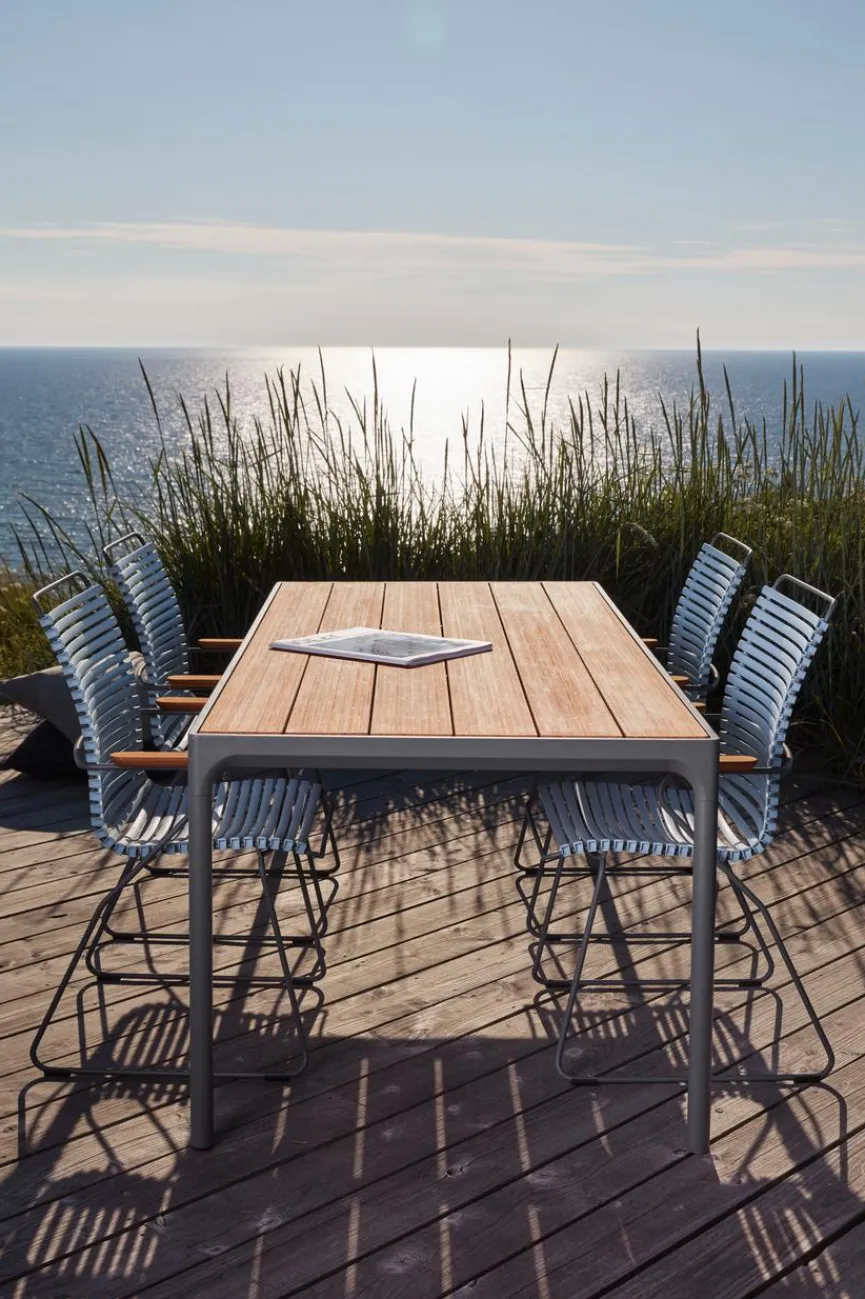 Der Gartentisch Four 210×90 cm von HOUE bietet mit seiner großzügig dimensionierten Tischfläche Platz für viele Köstlichkeiten in fester und flüssiger Form, wenn Sie eine fröhliche Gartenparty planen. Die Oberfläche der Platte aus Bambuslamellen ist schick im Aussehen und bequem in der Handhabung. Durch das Gestell aus Aluminium ist der Gartentisch Four 210×90 cm von HOUE zudem problemlos zu bewegen.